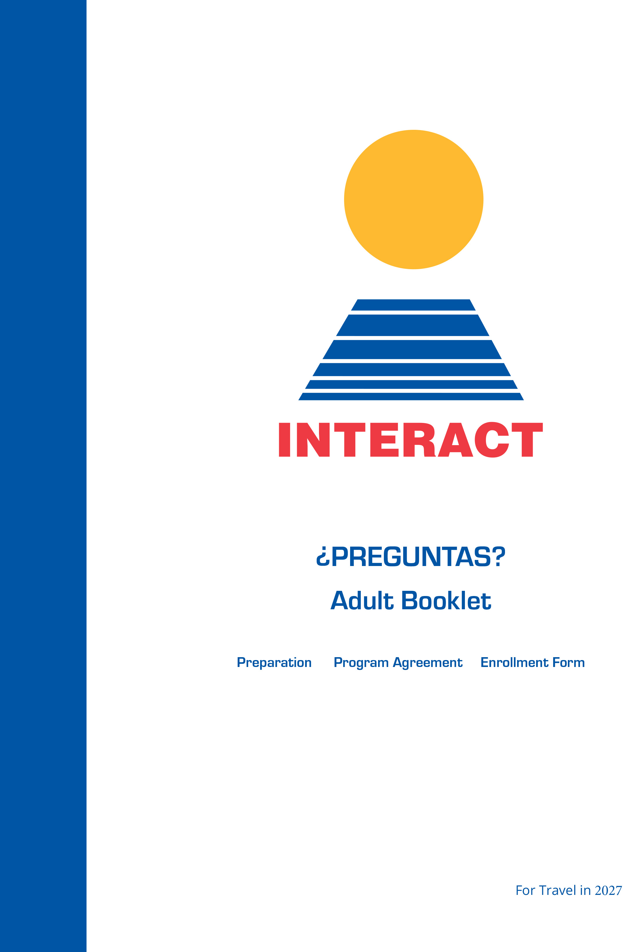 ADULT PARTICIPANT FORMS FOR 2027 TRAVEL The enrollment form, waiver & release, and the $975 initial initial deposit must be submitted as a part of the enrollment process. Be sure to make copies for your records. Download and print: | Preguntas Adult Participant Booklet Preparation, Policies, Enrollment Form Download and print: | Adult Participant Waiver and Release